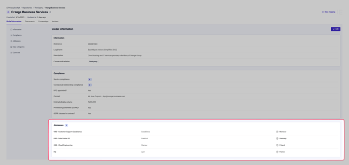 You can now add multiple locations to a third party (e.g., HQ, branch office, data center). - Processing activities