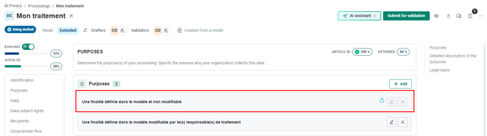 Processing templates - Restricted mode - Identifying fields that cannot be modified in a processing
